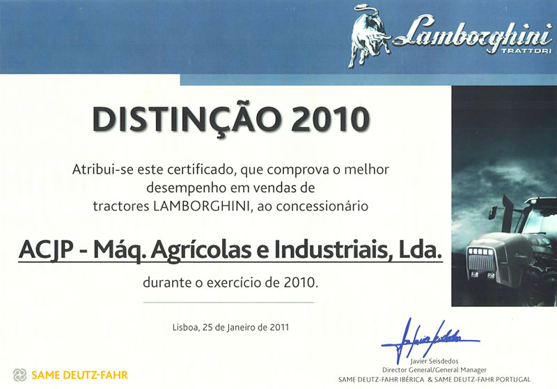 Em 2009 surge a possibilidade de trabalhar com as prestigiadas marcas Lamborghini e Massey-Ferguson, como concessionários para grande parte do Distrito de Leiria e alguns concelhos de Coimbra.